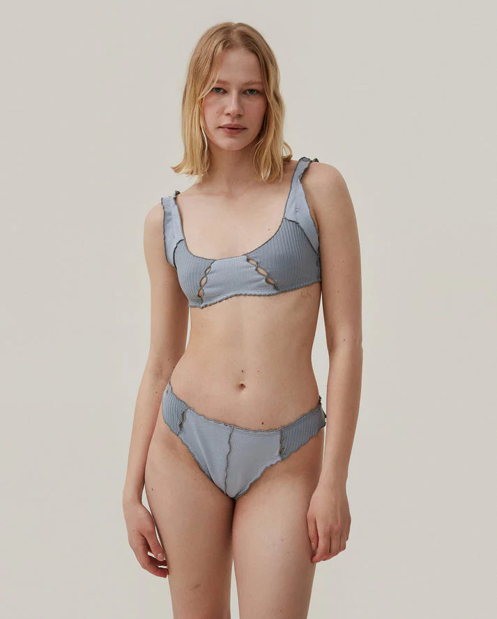Draped thong focused on soft fit and tactile comfort. Waves and gathers create fluid lines on the body. Lingerie that gently interacts with the skin.